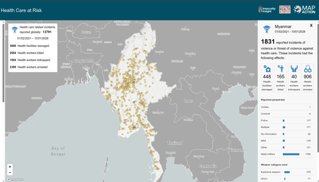 ကဏ္ဍစုံလိုအပ်ချက် ဆန်းစစ်ခြင်း (Multi Sector Needs Assessment –  MSNA) ဟာ ကျန်းမာရေးစောင့် ရှောက်မှုအတွက် အရေးကြီးတဲ့ အတားအဆီးက ဘာတွေလဲဆိုတာကို ဆန်းစစ်တာ ဖြစ်ပါတယ်။ MSNA ဆန်းစစ်မှုတွေအရ မြန်မာပြည်မှာ ကျန်းမာရေးစောင့်ရှောက်မှုအတွက် အရေးကြီးဆုံး အတားအဆီးက ငွေကြေး မရှိတာ ဖြစ်ပြီး ဒါဟာ ၅၂ ရာခိုင်နှုန်းအထိ ရှိပါတယ်။ ၂၉ ရာခိုင်နှုန်းကတော့ ဆေးကုသနိုင်တဲ့ ကျန်း မာရေးဌာန မရှိတာ ဖြစ်ပြီး လုံလောက်တဲ့ ကုသမှု မရတာဟာ ခြောက်ရာခိုင်နှုန်း ရှိပါတယ်။ MHC ရဲ့  ဒီဆန်း စစ်မှုအရ ရခိုင်၊ ကယားနဲ့ စစ်ကိုင်းတိုင်းတို့က လူဦးရေ ၅၀ ရာခိုင်နှုန်းဟာ အခြေခံကျန်းမာရေး ဝန်ဆောင်မှုတွေနဲ့ လက်လှမ်းမီဖို့ ကြီးမားတဲ့ အခက်အခဲတွေနဲ့ ရင်ဆိုင်နေရသလို ကချင်၊ တနင်္သာရီ၊ ကရင်၊ ရှမ်းမြောက်နဲ့ ချင်းပြည်နယ် ၂၅ ရာခိုင်နှုန်းကနေ ၄၀ ရာခိုင်နှုန်းကြားမှာ ကျန်းမာရေးစောင့်ရှောက်မှု ရဖို့ ပြင်ပက အကူအညီတွေ လိုအပ်နေပါတယ်တဲ့။ အထောက်အထားအခြေပြု မူဝါဒတွေ ချမှတ်တဲ့အခါ သတင်းအချက်အလက် ပံ့ပိုးပေးခြင်းနည်းနဲ့ လူသားချင်းစာနာမှု လုပ်ဆောင်နေတဲ့ အေဂျင်စီတွေ၊ ကျန်းမာရေး / ပညာရေး / အကာအ ကွယ်ပေးရေးကို အချက်အလက်ပံ့ပိုးပေးနေတဲ့ Insecurity Insighgt က မြန်မာပြည်နဲ့ ပတ်သက်ပြီး ၂၀၂၁ ခုနှစ်ကနေ ၂၀၂ ခုနှစ် နိုဝင်ဘာ ၂၇ ရက်အထိ ကောက်ယူထားတဲ့ အချက်အလက်တွေကိုလည်း သူတို့ရဲ့ ရှေ့လုပ်ငန်းစဉ် “Strategy 2026-2027” အတွက် HCM က ကိုးကားခဲ့ပါတယ်။ Double I လို့ ခေါ်ရမယ့် Insecurity Insight မှတ်တမ်းအရ ပဋိပက္ခတွေကြောင့် ကျန်းမာရေးကဏ္ဍနဲ့ ဆက်စပ်တဲ့ နေရာထိခိုက်မှုဟာ ၁,၈၁၅ ကြိမ်အထိ ရှိခဲ့သလို WHO ရဲ့ Surveillance System for Attack on Health Care အရ အလားတူ ကာလထဲမှာ ကျန်းမာရေးစောင့်ရှောက်မှုနဲ့ ဆက်စပ်တဲ့အရာတွေ ထိခိုက်မှုဟာ ၅၁၀ ကြိမ်အထိ ရှိပါတယ်တဲ့။  ကျန်းမာရေးစောင့်ရှောက်မှုနဲ့ ဆက်စပ်တဲ့အရာတွေ ဆိုတဲ့နေရာမှာ ကျန်းမာရေးအဆောက်အအုံတွေ ထိခိုက် ပျက်စီးတာအပြင် ကုသရေးအတွက် မဖြစ်မနေ လိုအပ်တဲ့ ဆေးဘက်ဆိုင်ရာ ပစ္စည်းတွေနဲ့ ကျန်းမာရေးဝန်ထမ်း ထိခိုက်မှုတွေကိုပါ ထည့်သွင်းတွက်ချက်တာပါ။ ပဋိပက္ခ နောက်ဆက်တွဲဆိုးကျိုးနဲ့ ၂၀၂၅ ခုနှစ် မတ် ၂၈ ရက်က လှုပ်ခတ်ခဲ့တဲ့ မီဂါငလျင်ကြောင့် ဖြစ်ခဲ့တဲ့ ထိခိုက်ဒဏ်ရာရမှုတွေကြောင့်လည်း ကိုယ် အင်္ဂါ ပြန်လည်သန်စွမ်းရေးနဲ့ အထောက်အကူပြု ပစ္စည်း တွေ၊ စိတ်ကျန်းမာရေးနဲ့ စိတ်ပိုင်းဆိုင်ရာ ပံ့ပိုးကူညီမှုတွေ၊ ထိခိုက်သူတွေအတွက် သင့်လျော်တဲ့ အကူအညီတွေလည်း လိုအပ်နေတယ်လို့ HCM က ဆိုထားပါတယ်။ အဲဒီဖြစ်စဉ်တွေမှာ ဒဏ်ရာရသူတွေကို အချိန်မီ မကုသ ပေးနိုင်တာ၊ အနာကြီးနဲ့ ပိုလီယိုလို ရောဂါတွေအတွက် စစ်ဆေးကုသမှု မပေးနိုင်တာတွေဟာ ကာကွယ်နိုင်ရဲ့ သားနဲ့ ဖြစ်ပေါ်လာရတဲ့ မသန်စွမ်းမှု အမျိုးအစားတွေ ဖြစ်ပြီး လုံလောက်တ
